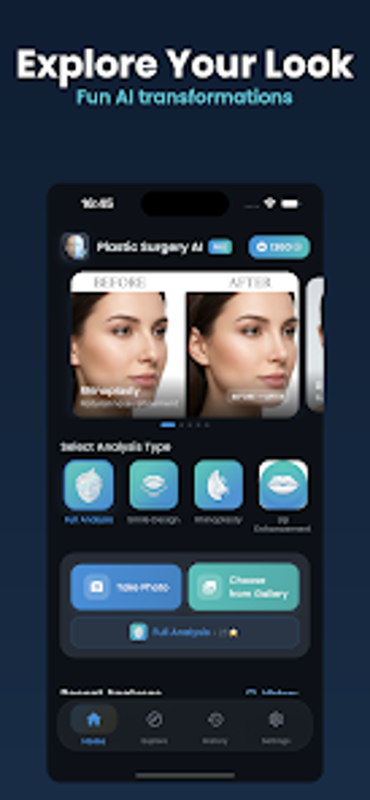 Nose Job - Plastic Surgery AI är en kreativ app för Android som låter användare utforska estetiska ansiktsidéer med hjälp av artificiell intelligens. Genom att ladda upp en bild kan användare förhandsgranska AI-genererade visuella redigeringar inspirerade av populära skönhets- och kosmetikastilar. Appen är utformad för att främja nyfikenhet och kreativitet, vilket ger en rolig och engagerande upplevelse när man visualiserar olika utseenden.